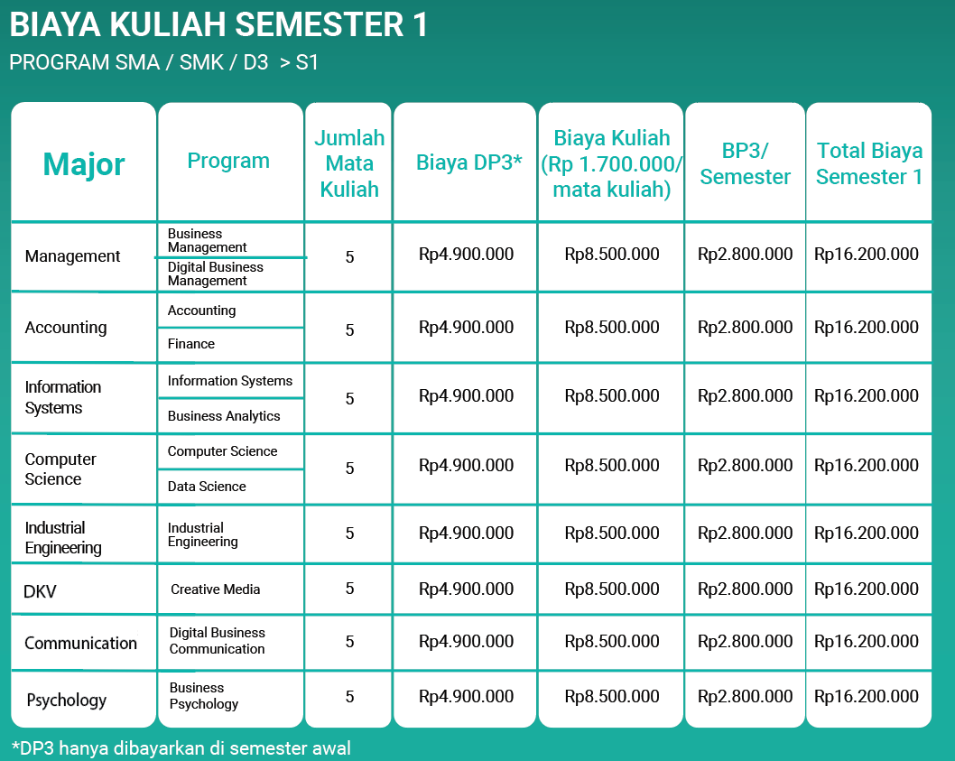 Biaya Kuliah Online S1 di BINUS ONLINE Periode Perkuliahan Juni 2026